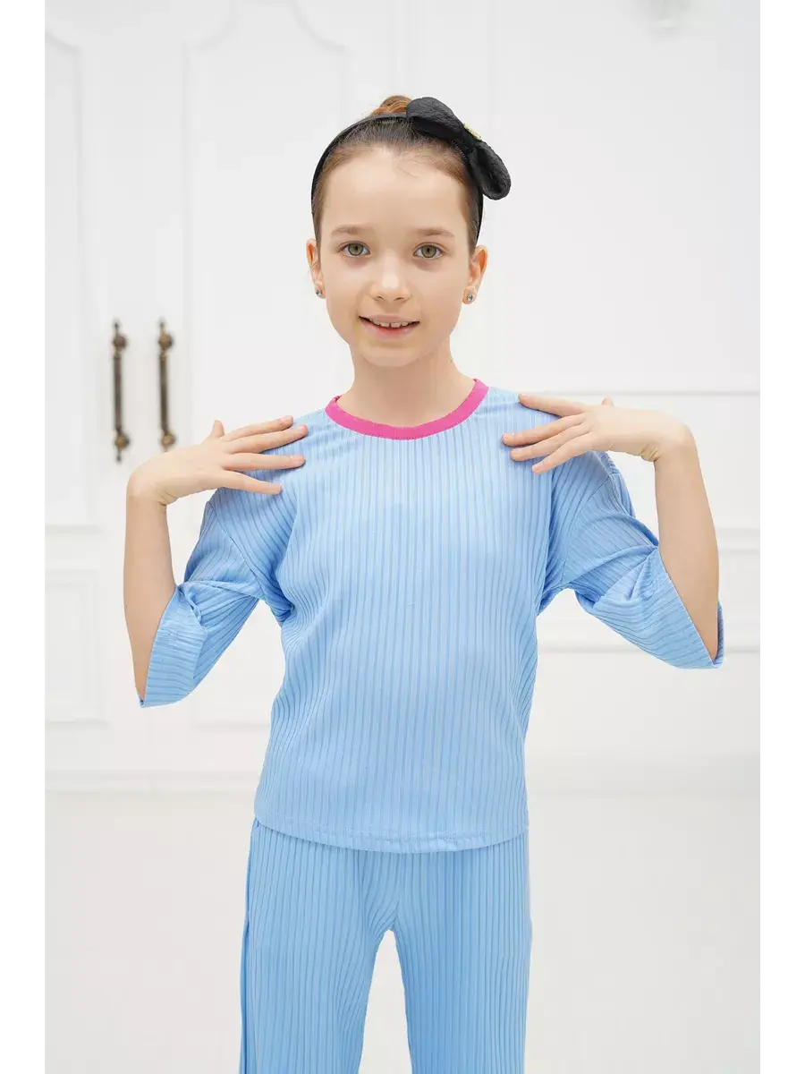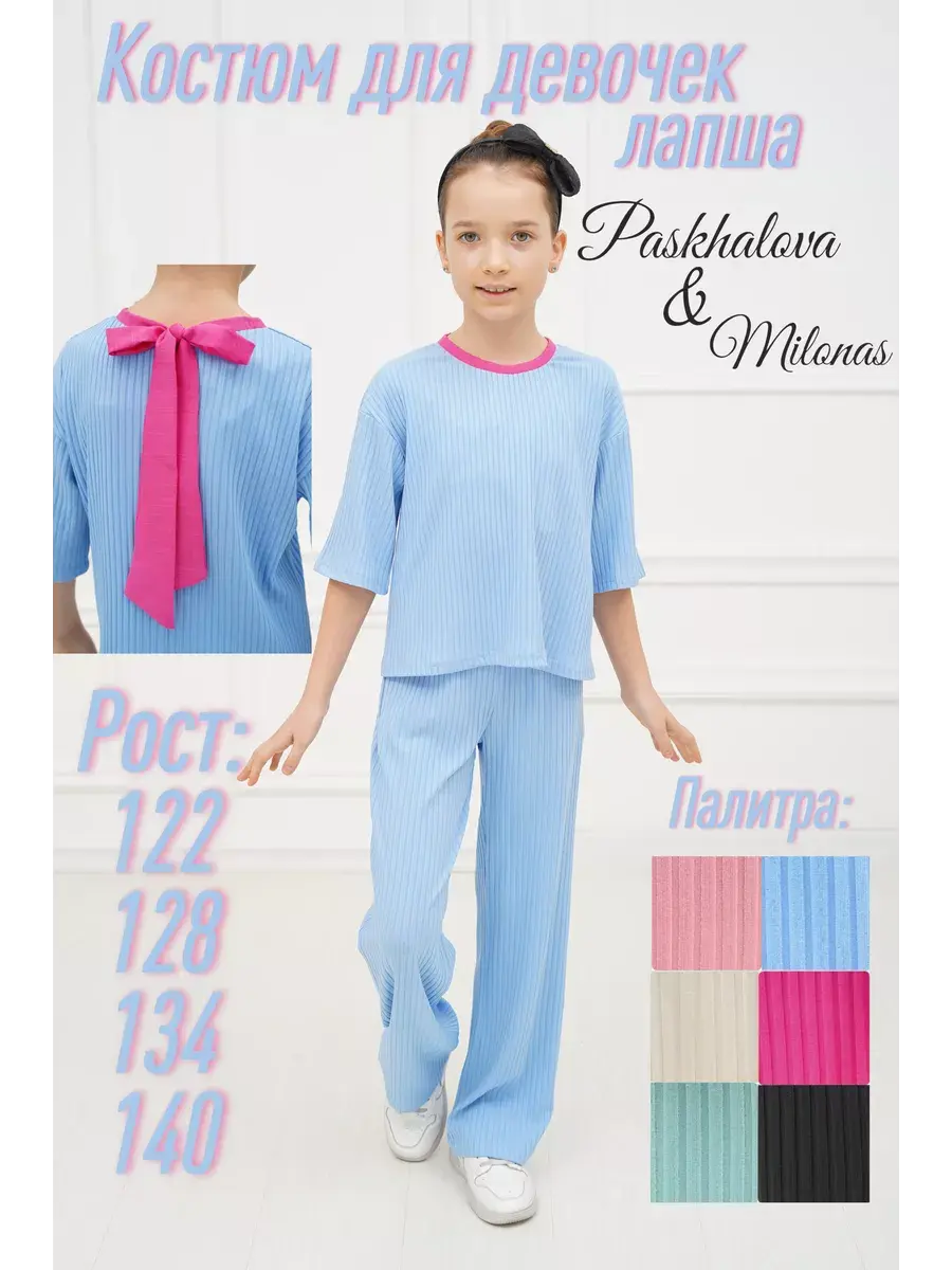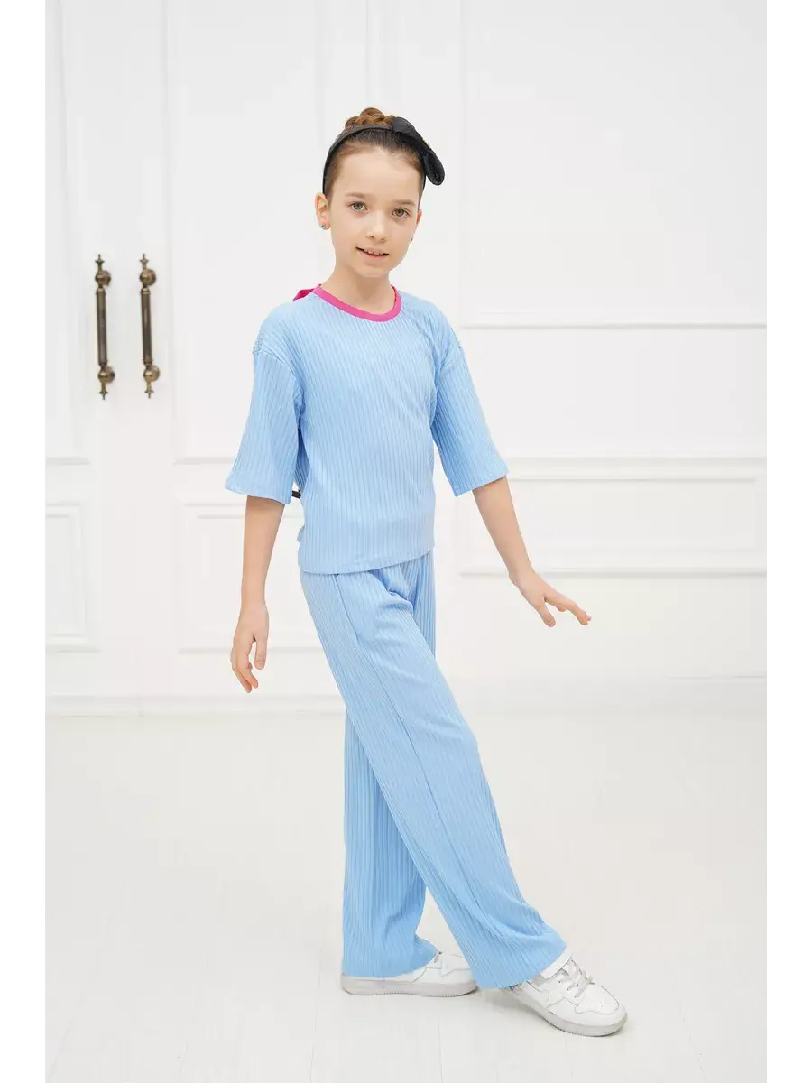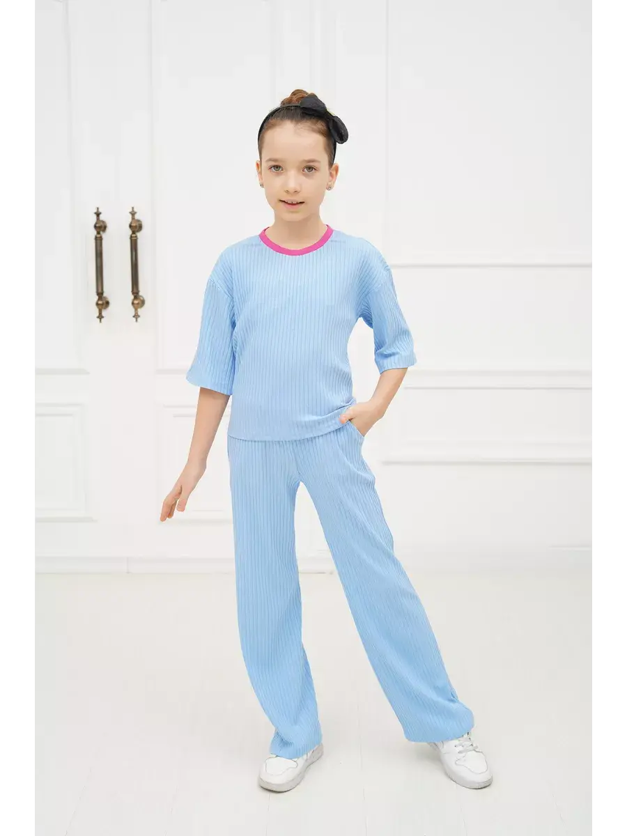 Костюм для девочки - идеальный вариант удобной детской одежды как для дома так и на выход. Стильный брючный костюм для девушек состоит из комплекта футболка и штаны (широкие брюки палаццо). Фасон оверсайз в подходит детям любой комплекции. Комплект одежды для девочки выполнен из гладкой и мягкой ткани лапша. Особенность летнего детского костюма - премиальная ткань, которая отлично тянется и не мнётся, поэтому Вашему ребёнку всегда будет удобно и комфортно в нашем костюме. Костюм пижамного стиля со штанами на эластичной резинке на поясе и футболкой с коротким рукавом. Костюмы нарядные детские представлены в модной цветовой гамме и отлично подойдут для дома, на вечернюю прогулку и в отпуске.Комплект двойка универсален и представлен в трендовых оттенках этого года. Он доступен в различных размерах, что делает его подходящим для подростков, миниатюрных девушек и женщин, так и для детей младшего возраста, посещающих детский сад. Прекрасный подарок на любой праздник.