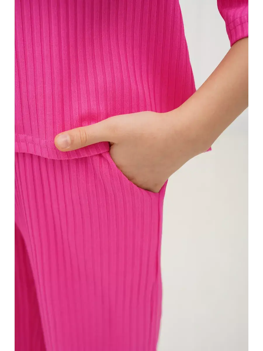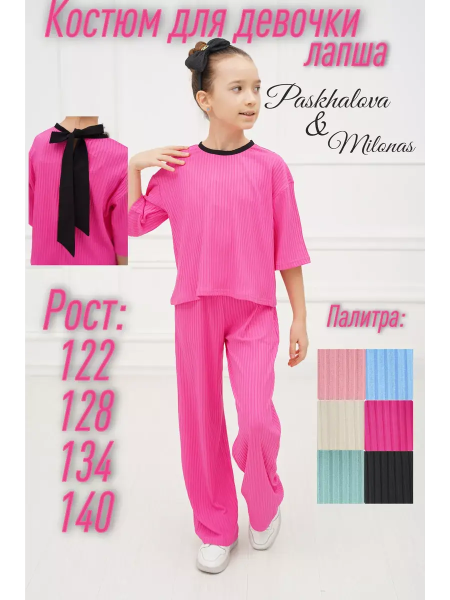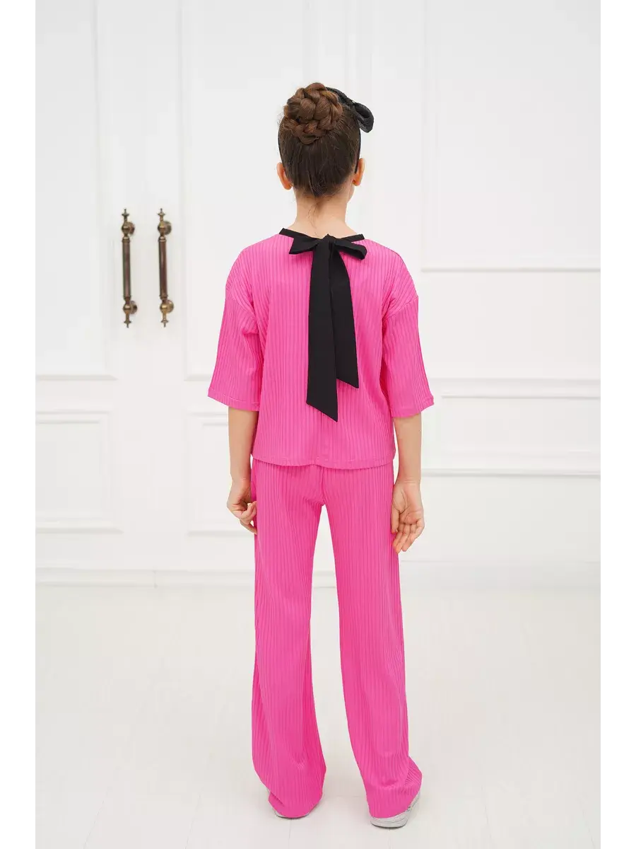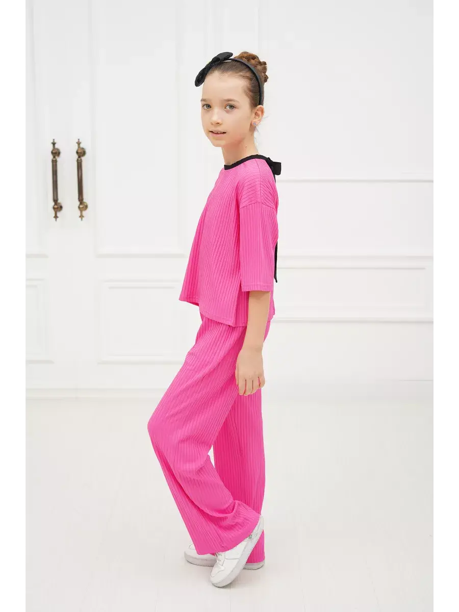 Костюм для девочки - идеальный вариант удобной детской одежды как для дома так и на выход. Стильный брючный костюм для девушек состоит из комплекта футболка и штаны (широкие брюки палаццо). Фасон оверсайз в подходит детям любой комплекции. Комплект одежды для девочки выполнен из гладкой и мягкой ткани лапша. Особенность летнего детского костюма - премиальная ткань, которая отлично тянется и не мнётся, поэтому Вашему ребёнку всегда будет удобно и комфортно в нашем костюме. Костюм пижамного стиля со штанами на эластичной резинке на поясе и футболкой с коротким рукавом. Костюмы нарядные детские представлены в модной цветовой гамме и отлично подойдут для дома, на вечернюю прогулку и в отпуске.Комплект двойка универсален и представлен в трендовых оттенках этого года. Он доступен в различных размерах, что делает его подходящим для подростков, миниатюрных девушек и женщин, так и для детей младшего возраста, посещающих детский сад. Прекрасный подарок на любой праздник.