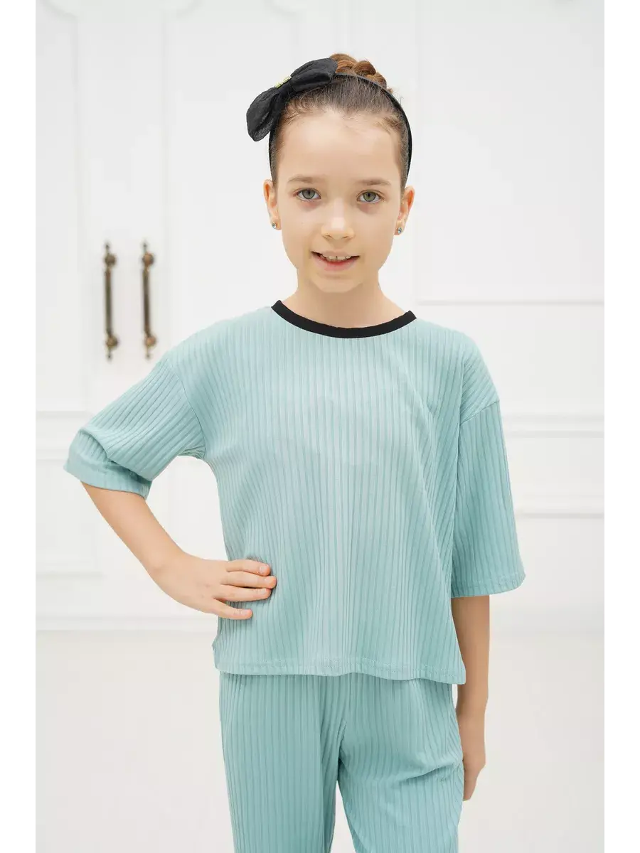 Костюм для девочки - идеальный вариант удобной детской одежды как для дома так и на выход. Стильный брючный костюм для девушек состоит из комплекта футболка и штаны (широкие брюки палаццо). Фасон оверсайз в подходит детям любой комплекции. Комплект одежды для девочки выполнен из гладкой и мягкой ткани лапша. Особенность летнего детского костюма - премиальная ткань, которая отлично тянется и не мнётся, поэтому Вашему ребёнку всегда будет удобно и комфортно в нашем костюме. Костюм пижамного стиля со штанами на эластичной резинке на поясе и футболкой с коротким рукавом. Костюмы нарядные детские представлены в модной цветовой гамме и отлично подойдут для дома, на вечернюю прогулку и в отпуске.Комплект двойка универсален и представлен в трендовых оттенках этого года. Он доступен в различных размерах, что делает его подходящим для подростков, миниатюрных девушек и женщин, так и для детей младшего возраста, посещающих детский сад. Прекрасный подарок на любой праздник.