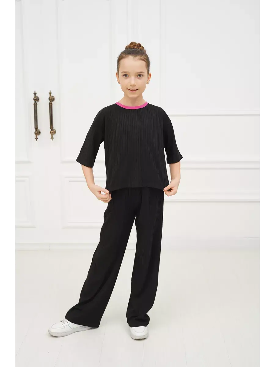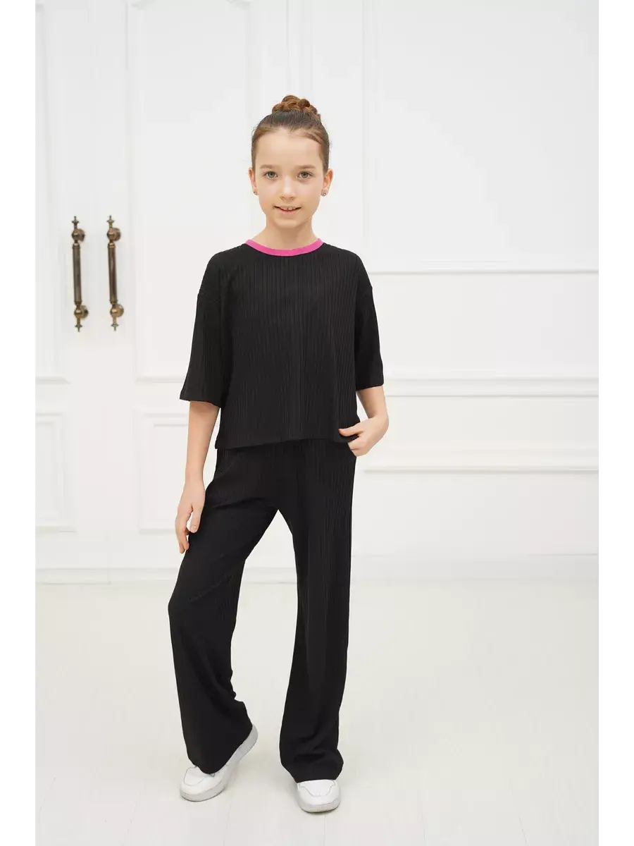 Костюм для девочки - идеальный вариант удобной детской одежды как для дома так и на выход. Стильный брючный костюм для девушек состоит из комплекта футболка и штаны (широкие брюки палаццо). Фасон оверсайз в подходит детям любой комплекции. Комплект одежды для девочки выполнен из гладкой и мягкой ткани лапша. Особенность летнего детского костюма - премиальная ткань, которая отлично тянется и не мнётся, поэтому Вашему ребёнку всегда будет удобно и комфортно в нашем костюме. Костюм пижамного стиля со штанами на эластичной резинке на поясе и футболкой с коротким рукавом. Костюмы нарядные детские представлены в модной цветовой гамме и отлично подойдут для дома, на вечернюю прогулку и в отпуске.Комплект двойка универсален и представлен в трендовых оттенках этого года. Он доступен в различных размерах, что делает его подходящим для подростков, миниатюрных девушек и женщин, так и для детей младшего возраста, посещающих детский сад. Прекрасный подарок на любой праздник.