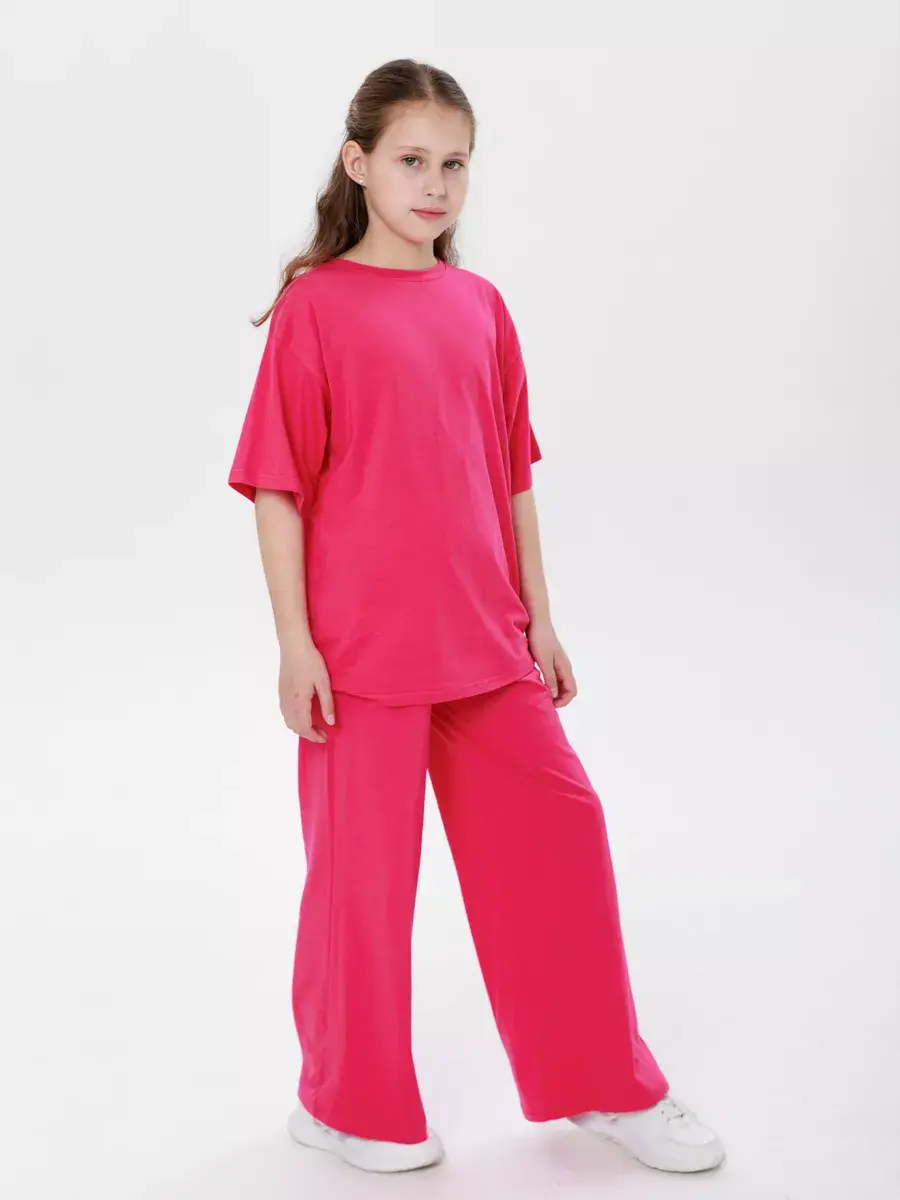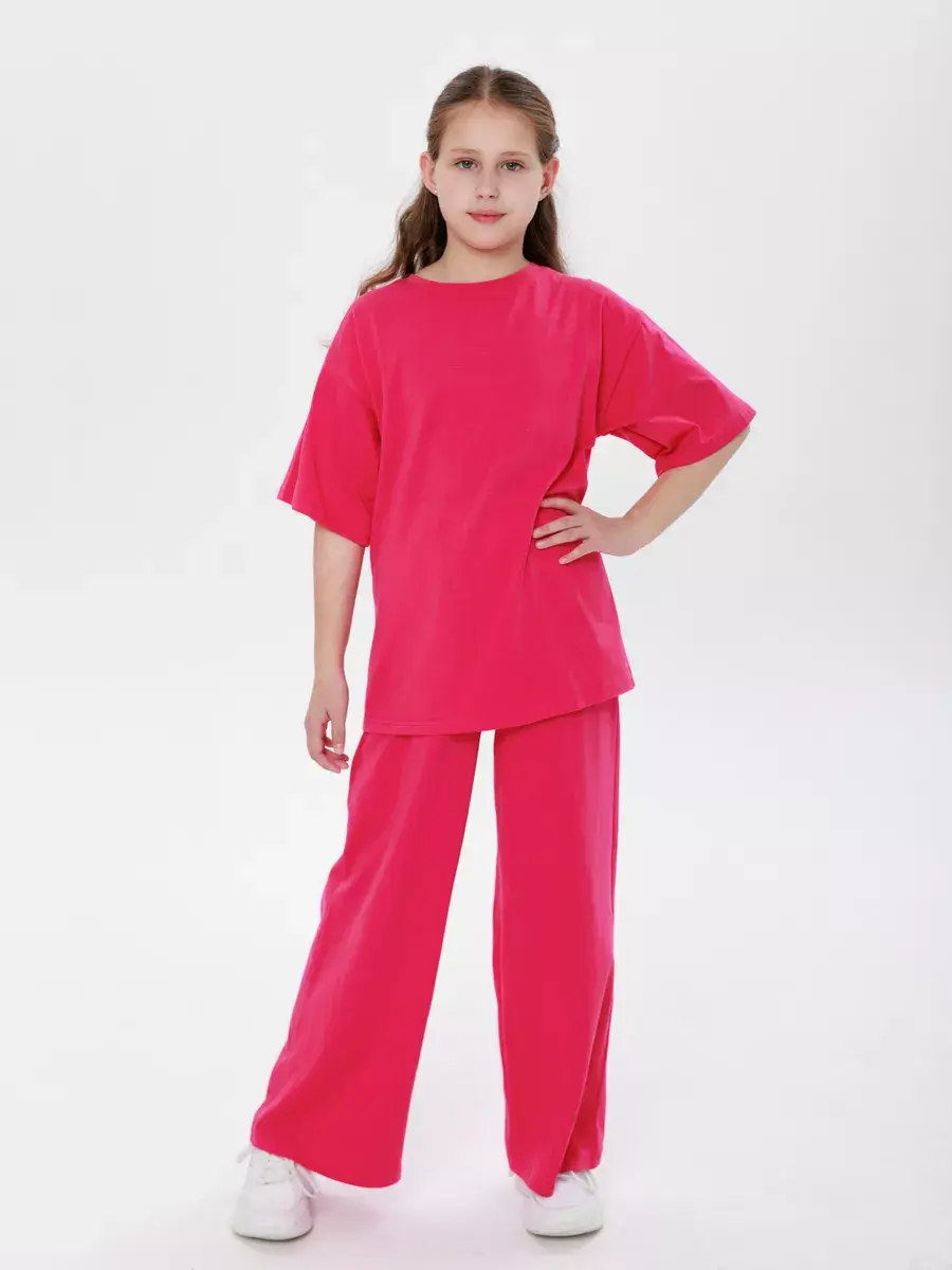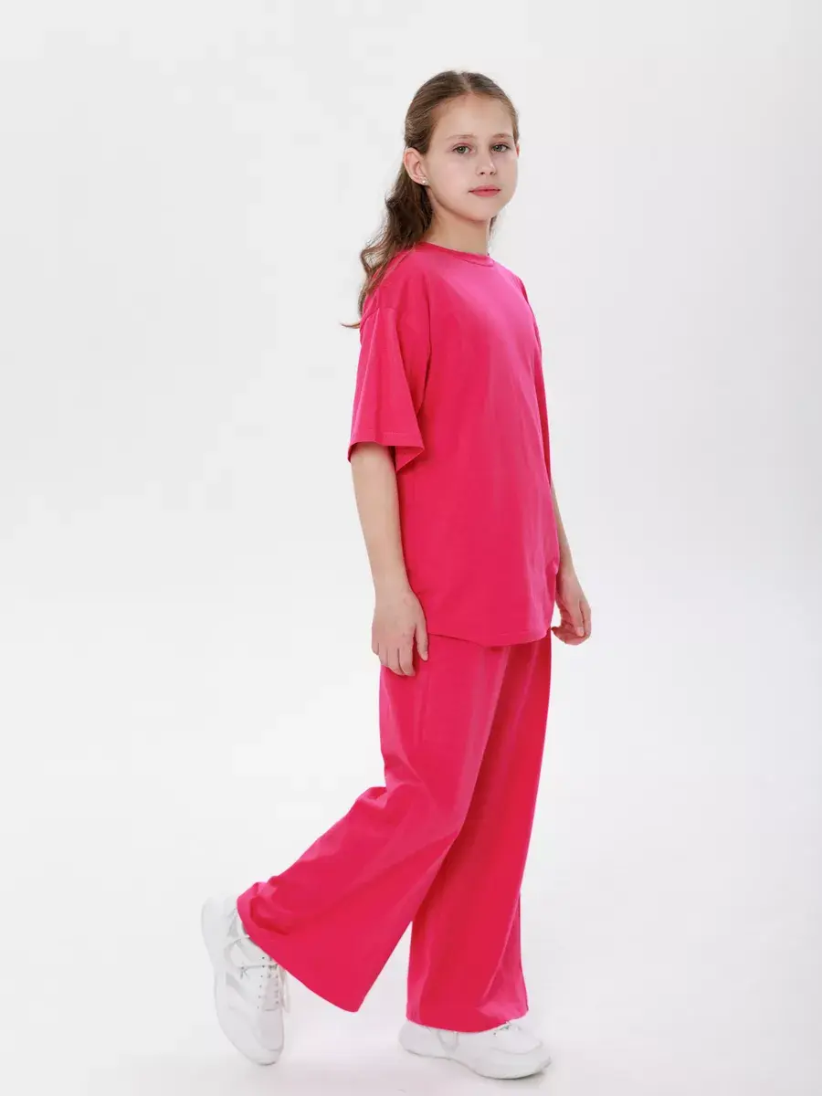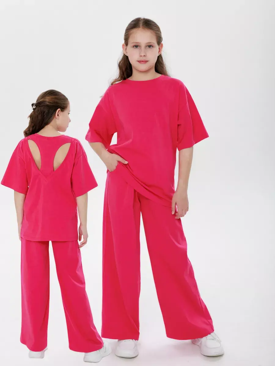 Брючный костюм детский палаццо - это стильный и комфортный комплект, который идеально подходит для занятий спортом в школе или на улице в теплое летнее время. Можно использовать как домашний костюм тонкий хлопковый для девочки выполнен с добавлением лайкры для удобства, что обеспечивает мягкость и гибкость, а также позволяет коже дышать в жаркую погоду. Демисезонный подростковый комплект включает в себя футболку с широкими брюками штанами палаццо, которые добавляют легкости и подчеркивают стильный лук. Комплект однотонный, что делает его универсальным и легким для сочетания с другими элементами гардероба. Летний костюм также доступен в различных размерах, чтобы соответствовать росту любой девочки. Эта одежда для подростков не только идеально подходит для фитнеса и занятий спортом в школе или на улице, но и легко сочетается с повседневной детской одеждой для девочек, делая его отличным выбором для сада или школьных занятий. Нарядный трикотажный костюм спортивный для девочек подойдет для детей всех возрастов и размеров, обеспечивая удобство и стильный вид для ребенка подростка, которая любит заниматься спортом и активно проводить время на улице во время весны и лета.