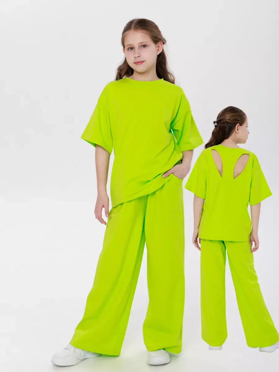 Брючный костюм детский палаццо - это стильный и комфортный комплект, который идеально подходит для занятий спортом в школе или на улице в теплое летнее время. Можно использовать как домашний костюм тонкий хлопковый для девочки выполнен с добавлением лайкры для удобства, что обеспечивает мягкость и гибкость, а также позволяет коже дышать в жаркую погоду. Демисезонный подростковый комплект включает в себя футболку с широкими брюками штанами палаццо, которые добавляют легкости и подчеркивают стильный лук. Комплект однотонный, что делает его универсальным и легким для сочетания с другими элементами гардероба. Летний костюм также доступен в различных размерах, чтобы соответствовать росту любой девочки. Эта одежда для подростков не только идеально подходит для фитнеса и занятий спортом в школе или на улице, но и легко сочетается с повседневной детской одеждой для девочек, делая его отличным выбором для сада или школьных занятий. Нарядный трикотажный костюм спортивный для девочек подойдет для детей всех возрастов и размеров, обеспечивая удобство и стильный вид для ребенка подростка, которая любит заниматься спортом и активно проводить время на улице во время весны и лета.