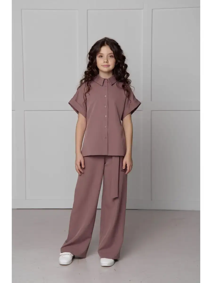 Костюм для девочки - идеальный выбор для любого праздничного мероприятия или повседневного выхода. Этот нарядный брючный комплект состоит из блузки и широких брюк, создавая элегантный и стильный образ для вашей маленькой принцессы.