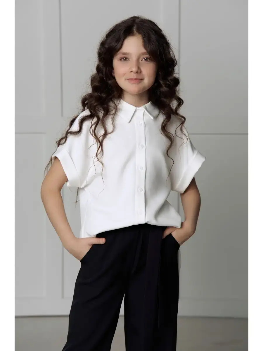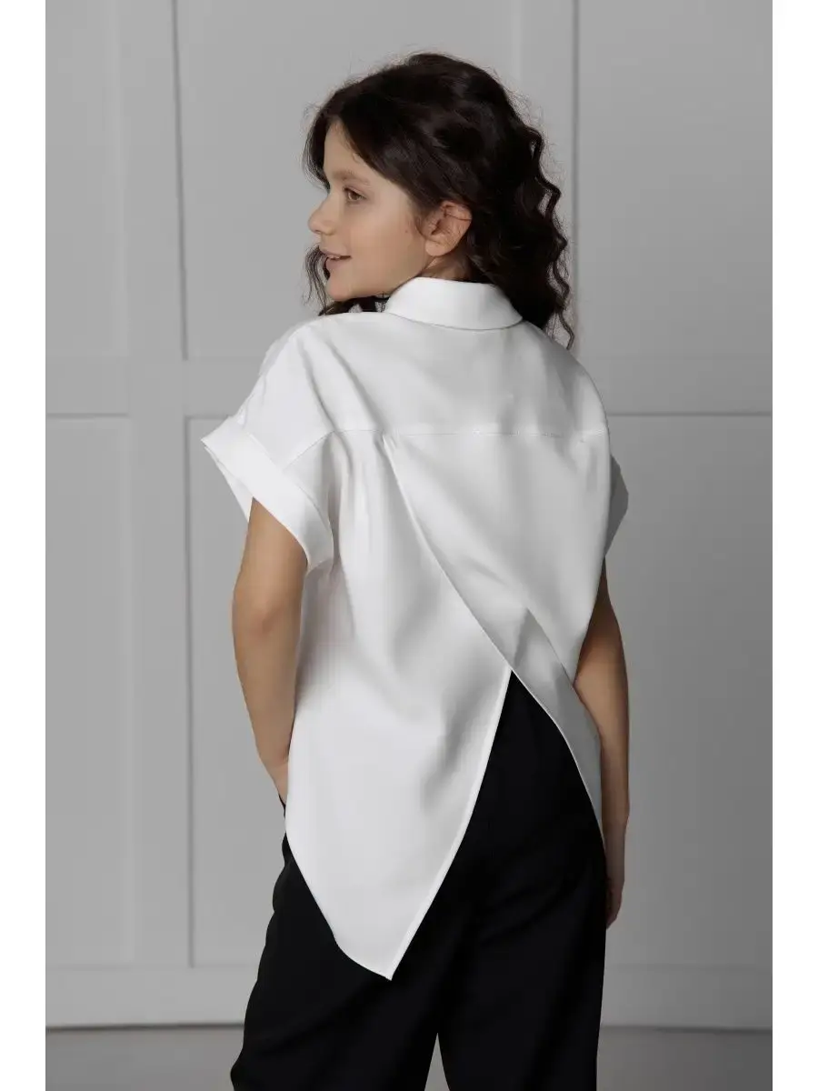 Блузка с оверсайз кроем и запахом на спине придает образу особую изысканность, а брюки-палаццо делают его еще более утонченным. Этот костюм идеально подойдет как для выпускного вечера, так и для школьного праздника или дня рождения.