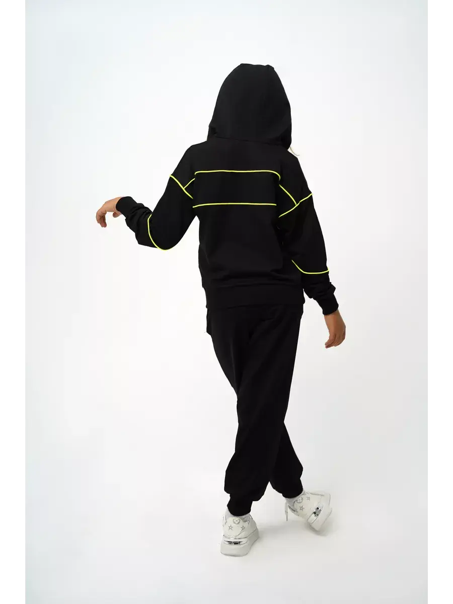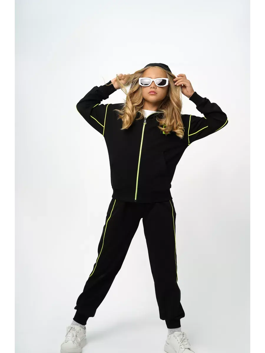 Этот стильный чёрный костюм с полоской идеально подойдет для девочки. Он создан для дерзких и смелых девочек, которые следят за своим стилем. Костюм отлично подойдет как для школы, так и для активного отдыха на улице или спортивных занятий.