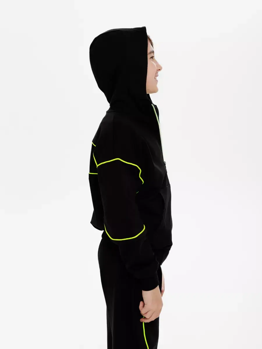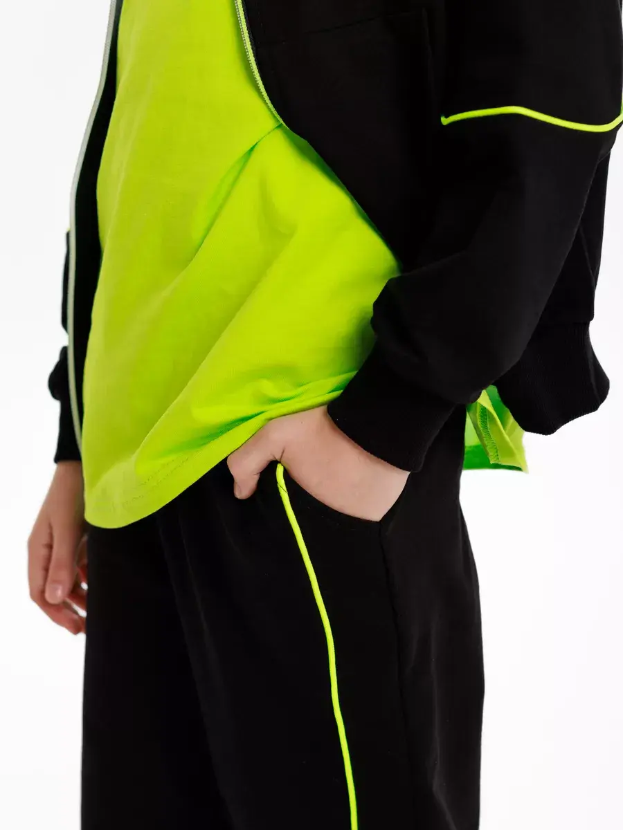Этот стильный чёрный костюм с полоской идеально подойдет для мальчика. Он создан для дерзких и смелых мальчиков, которые следят за своим стилем. Костюм отлично подойдет как для школы, так и для активного отдыха на улице или спортивных занятий.