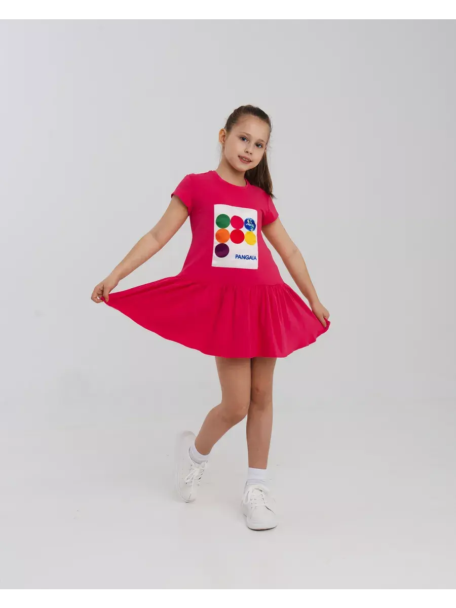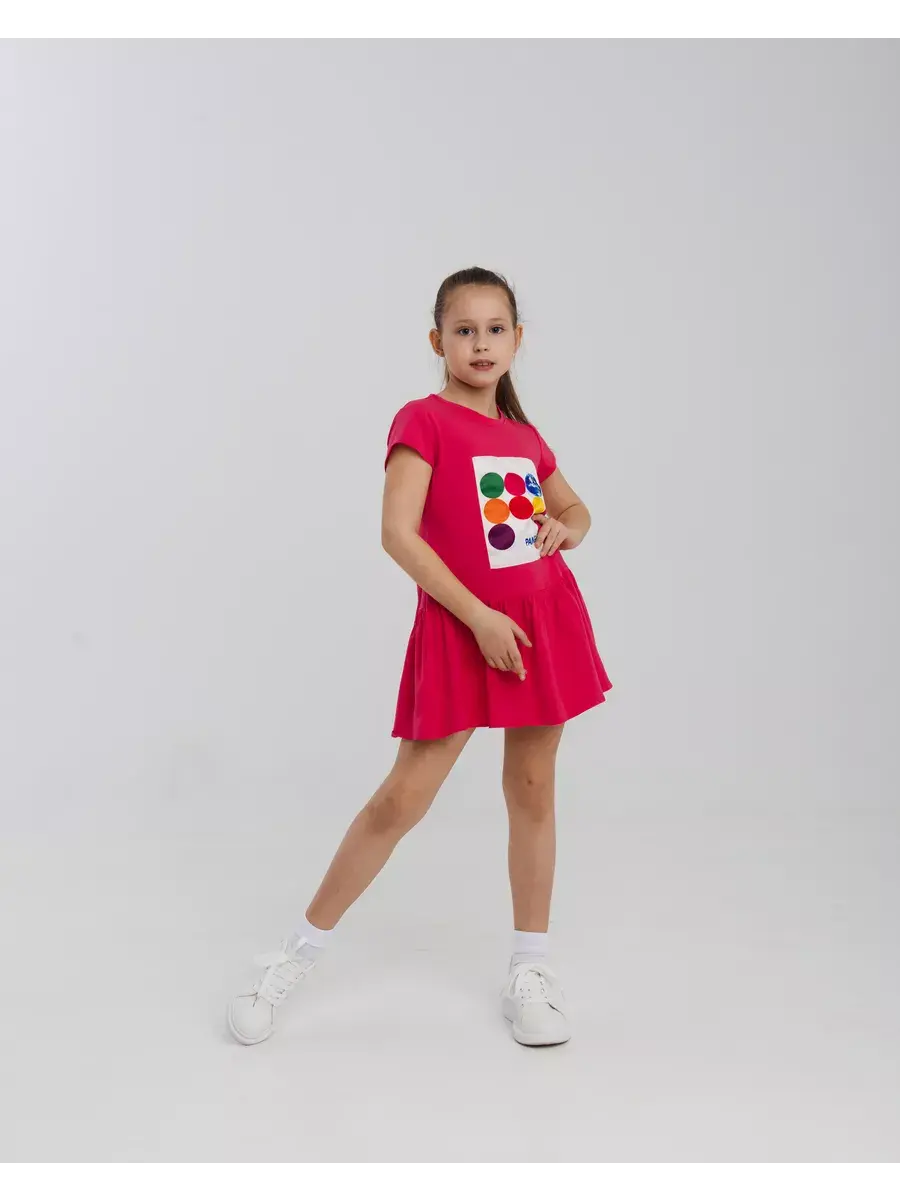 Изготовленное из легкого и комфортного трикотажного материала, платье обеспечит вашей дочке ощущение свободы и удобства в любой ситуации. Красивый мини-сарафан с оверсайз фасоном и яркими летними оттенками станет отличным выбором для активных девочек, которые ценят стиль и комфорт.