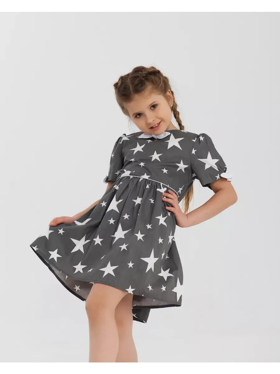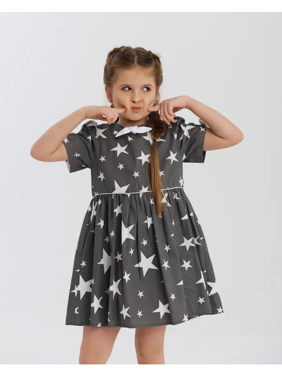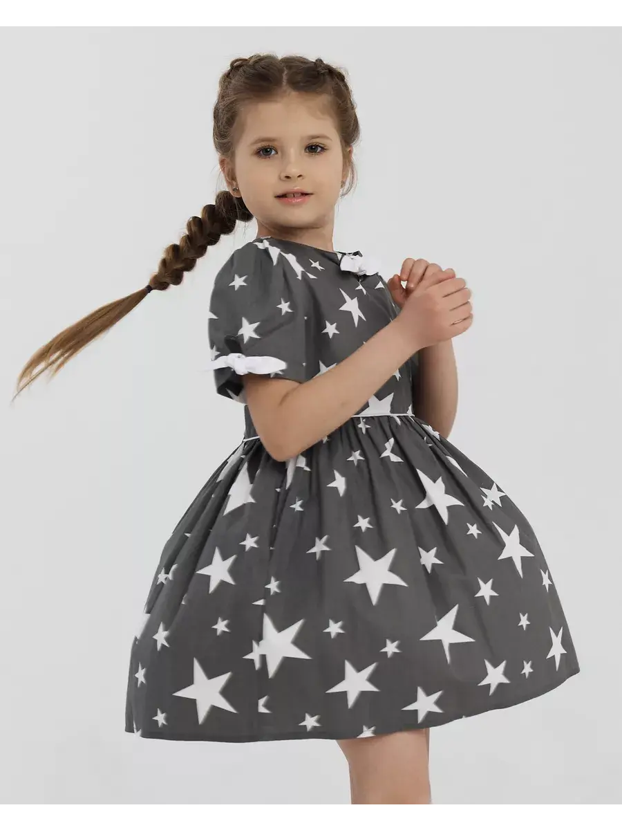 Новая коллекция летней одежды для девочек уже здесь! И мы рады представить новинку - стильное платье для девочки . Для изготовления выбран легкий хлопок.Платье силуэта принцесса, поэтому не будет сковывать движения вашей девочки. Эти вещи можно носить как ежедневно на улице (уличное), так и дома, как домашнее .Платье украшено красивым принтом звёздами,что подчеркнет образ вашего ребенка. Платье для девочки летнее имеет короткий рукав с разрезами на плечах,по длине выше колен, что создает свежий и летний образ, и оно подойдет для девочек подростков невысокого роста. Вырез на горловине округлый, что добавляет мягкость вашему образу. Это платье - идеальное решение на каждый день, подойдет для любого мероприятия и праздника .Вы можете выбрать его для похода в кино или как пляжный сарафан море, а также на утренники в школу. Детская одежда доступна в любых .размерах