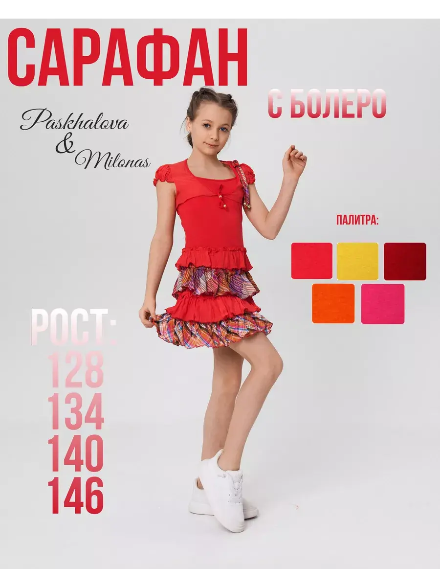 Сарафан нарядный летний для девочек в ярких летних расцветках не оставит равнодушными маленьких модниц. Повседневное платье на тонких бретелях отлично подойдет для лета. Болеро в комплекте защитит плечи Вашей девочки от палящего летнего солнца. Дышащая ткань - то, что нужно для прогулок в жаркий, летний день. Лёгкий сарафан на лямках - это базовая вещь, должна быть в гардеробе каждой девочки, ведь сарафан можно носить не только в детский сад, на море, на прогулку, но одевать и как одежду для дома.